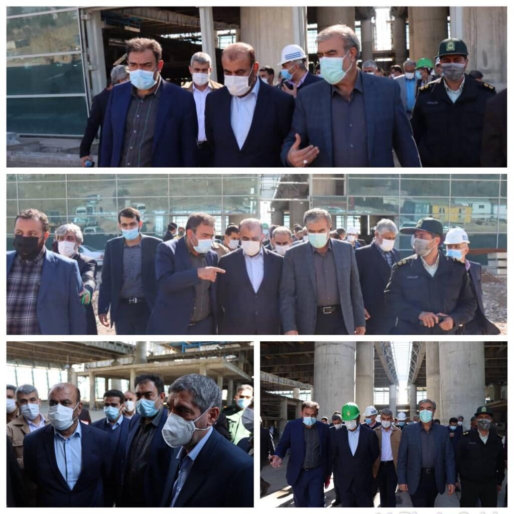 وزير محترم راه و شهرسازي، در جریان سفر به استان فارس در روز جاري ، از روند اجراي پروژه ترمینال جدید بین المللی فرودگاه شیراز بازدید نموده و ضمن تشكر از مسئولين اجرايي پروژه ، بر تسریع در تکمیل آن تاکید کرد. رستم قاسمی وزیر راه و شهرسازي پس از ورود به فرودگاه شیراز از بخشهاي مختلف ترمینال بین المللی بازدید کرد و دستورات لازم براي ادامه روند احداث پروژه را صادر نمود.